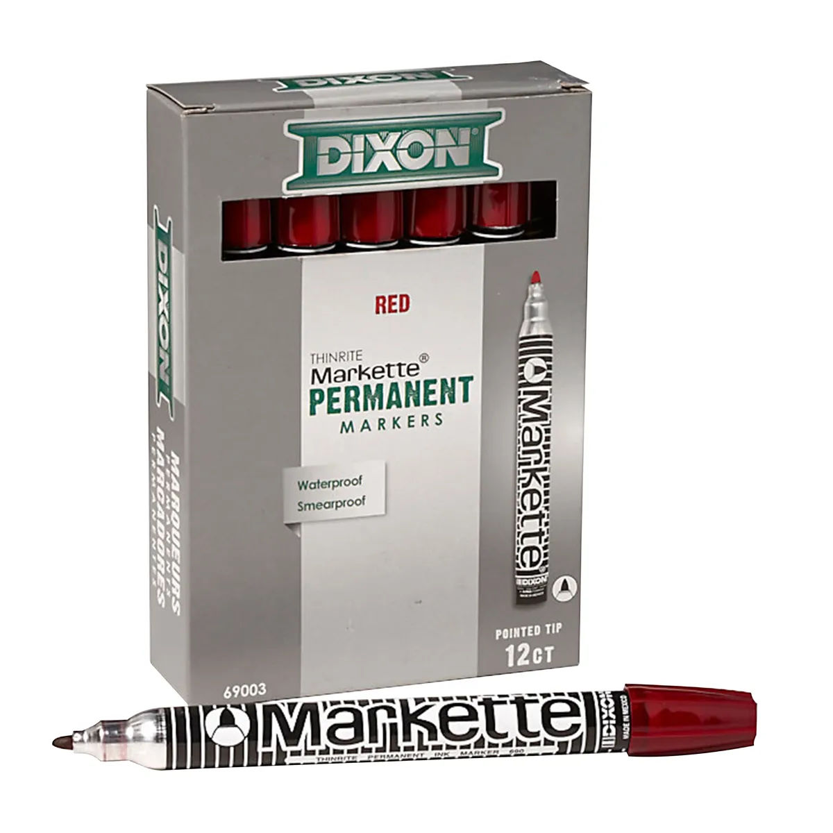 12pk Markette Thinrite 6in Metal Barrel - Fine Point Red