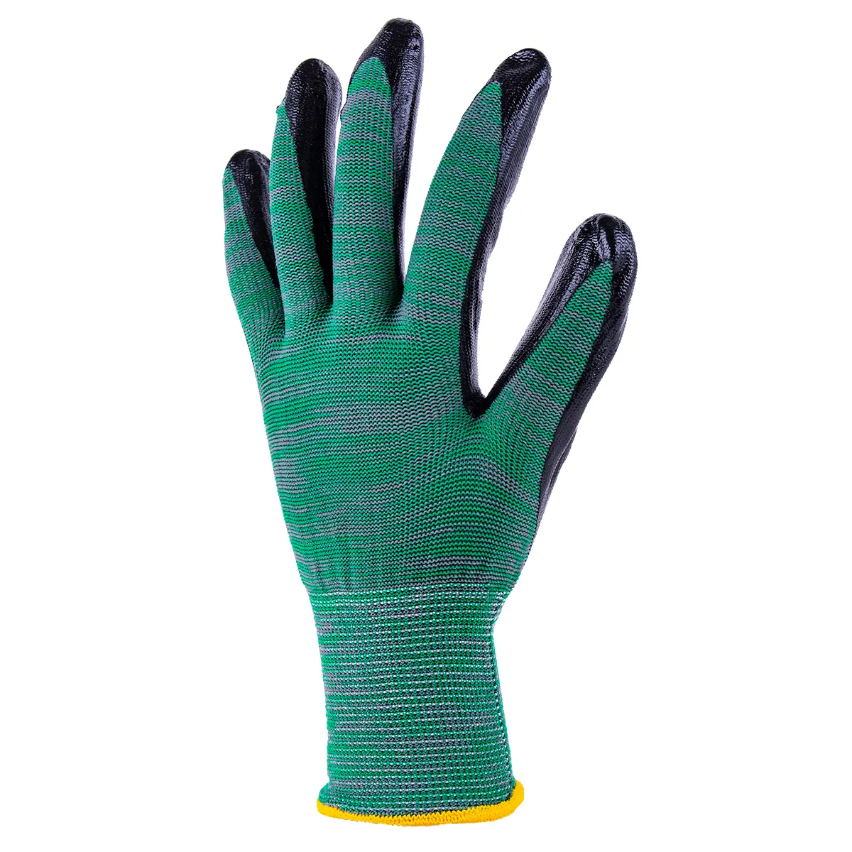1dz. Knitted Polyester Gloves Green With Black Nitrile Palm (M)