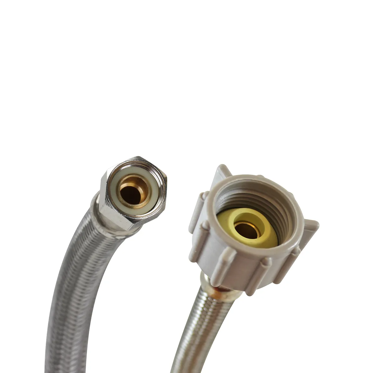 Fluidmaster toilet water supply connectors are built to last. Made of a tough polymer core covered with braided stainless steel wire; these connectors exceed every code requirement in the book for durability. Fluidmaster offers a wide variety of types and sizes; perfect for your home improvement efforts.