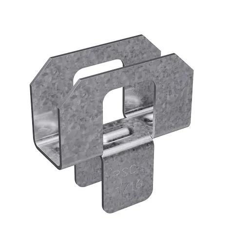 The PSCL is designed to brace unsupported sheathing edges when sheathing meets edge to edge without a rafter for support. This light sheathing clip provides a 1/8" gap to address shrinkage and expansion of roof sheathing. Inserted over the edges of adjacent plywood panels, the PSCL reduces deflection and keeps panels even to maintain a level plane on the structure.