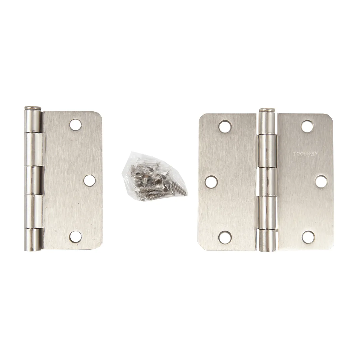 2PC Door Hinge 3 1/2in x 3 1/2in Round Corner 1/4in Satin Nickel Steel