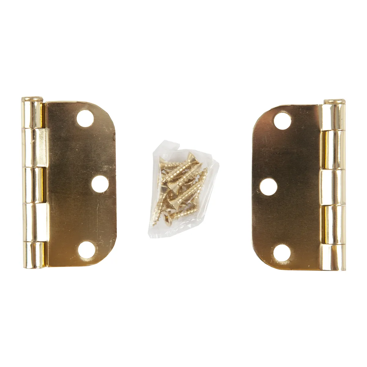 2PC Door Hinge 3in x 3in Round Corner 5/8in Brass Plated Steel
