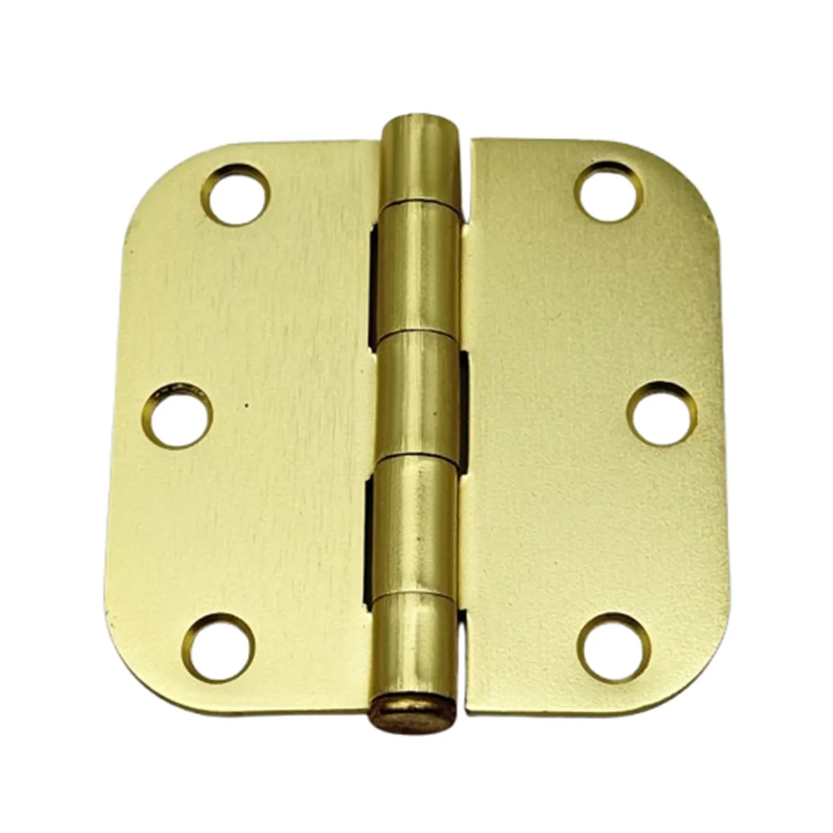 2PC Door Hinge 3in x 3in Round Corner 5/8in Brushed Gold Steel