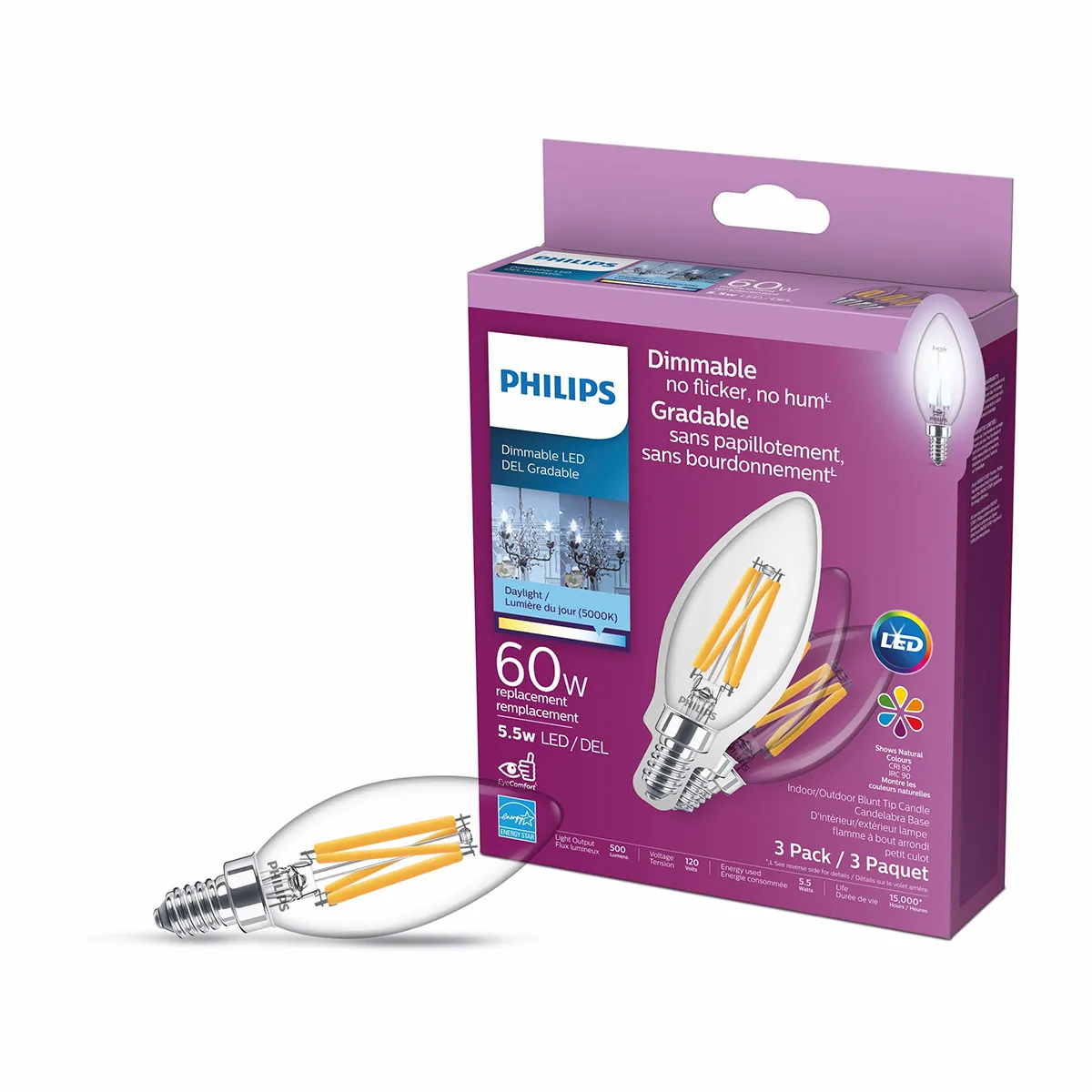 3PK Dimmable LED Light Bulb 3.3W (60w) Blunt Time Candle Candelabra Base (B11)