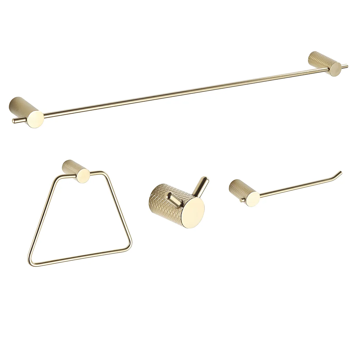 4PC Knurled Bathroom Hardware Wallmount Set Brushed Gold