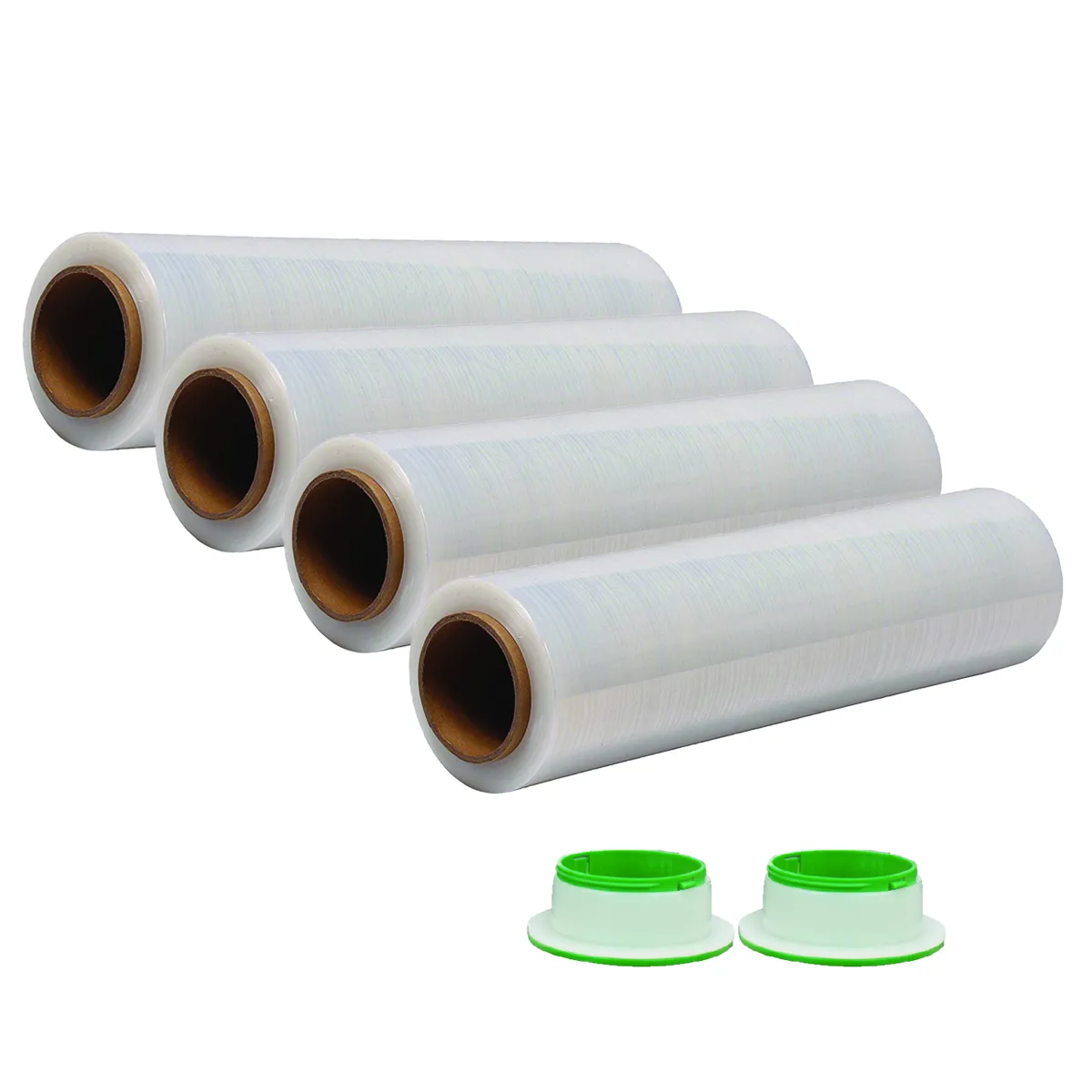 4PK Hand Stretch Wrap Clear 20inx1500ft 80GA. Bonus 1-Pair Handle