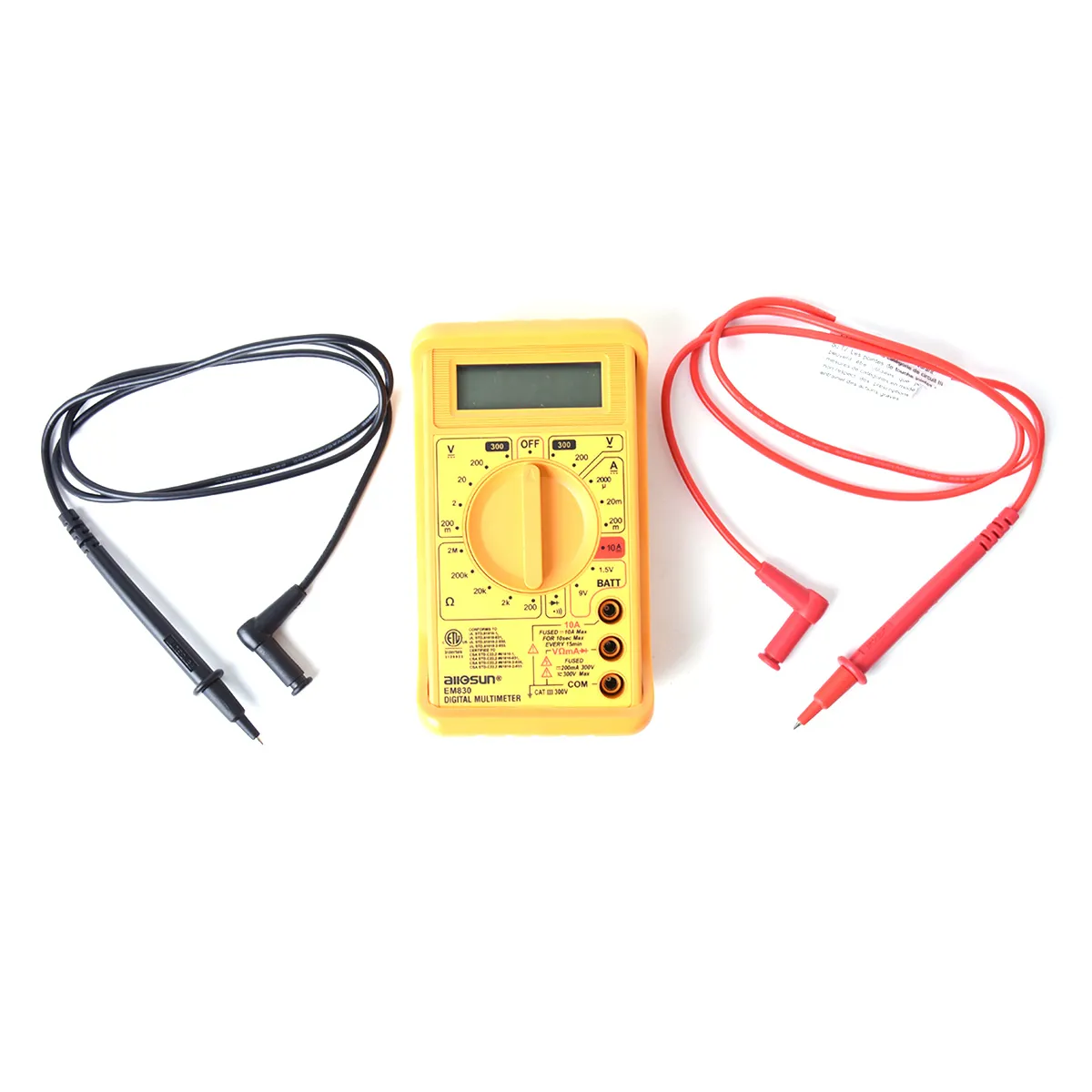 This versatile 7 function digital multimeter provides precise measurements and tests for a variety of electronics. This multimeter tests AC voltage; DC voltage; DC current; continuity; resistance; transistor and battery test. Features an easy-to-read digital LCD display and automatic zero adjust.