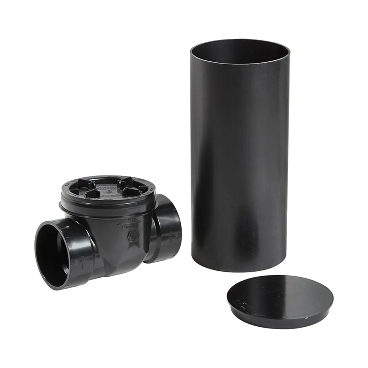 ABS DWV Backwater Valve With Plug & Chimney 4in Black
