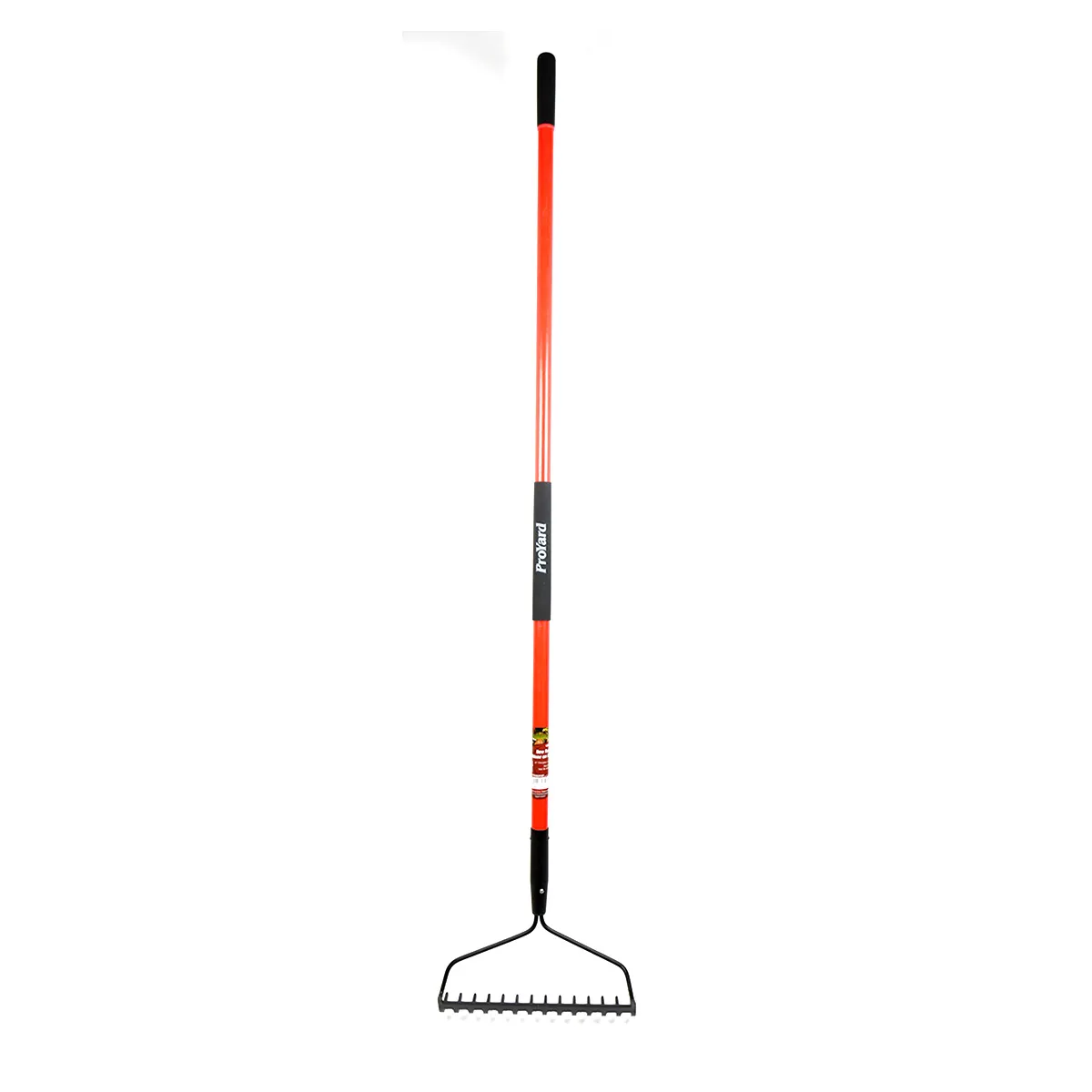 This contractor grade bow rake is designed with 14 hardened steel tines and a long fibreglass handle making it strong and durable. It has also been outfitted with cushion grips to lessen vibrations and hand fatigue. Perfect for professionals and homeowners alike, this tool is ideal for loosening compact soil, spreading mulch or hay, collecting leaves or grass and leveling areas before planting.
