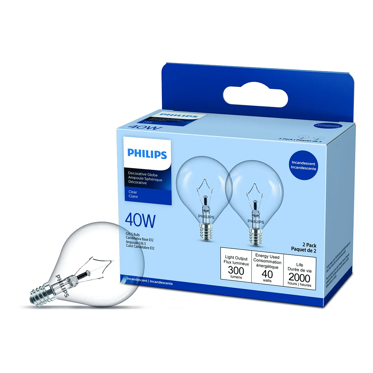 2PK Bulb G16-1/2 Incandescent Deco Vanity 40W Clear