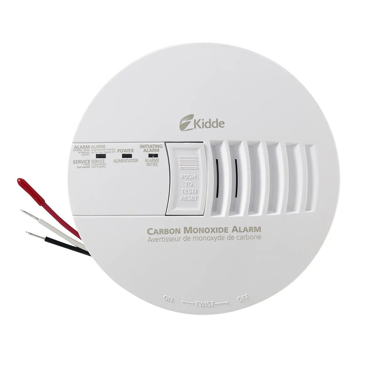 - Hardwire unit with test and reset button to verify alarm operation by pressing the test button to perform a diagnostic test.