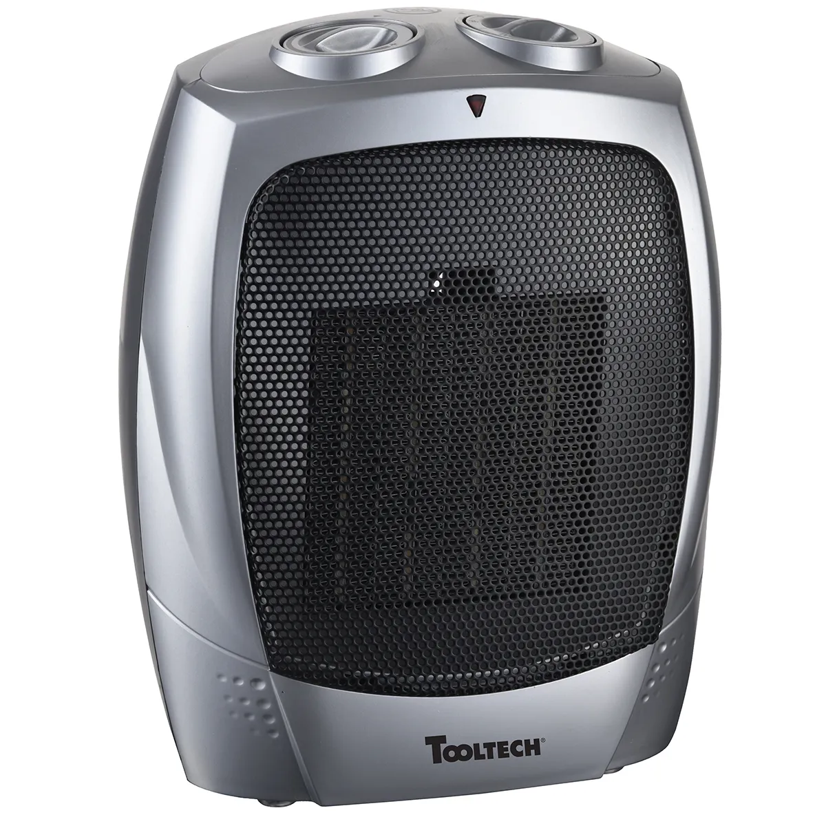 - The Tooltech® portable heater is equipped with an adjustable thermostat allowing you to quickly set the ceramic heating element between 2 heat settings: 750/1500 watt.
