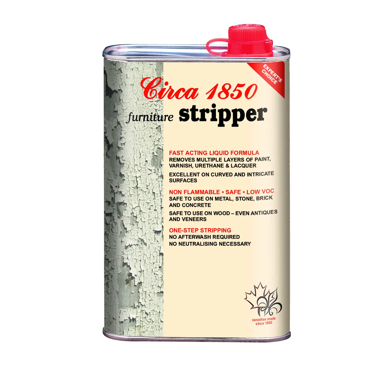 Circa 1850 furniture stripper quickly and easily strips off multiple layers of oil; latex and epoxy paint; oil and latex varnish; polyurethane; moisture cure; lacquer and shellac. It does not require any after wash or neutralizing. Safe to use on fine furniture – will not raise wood grain; harm most glue joints or veneers; or damage patina. May soften plastic and fiberglass. Circa 1850 furniture stripper is non-flammable and almost odorless.