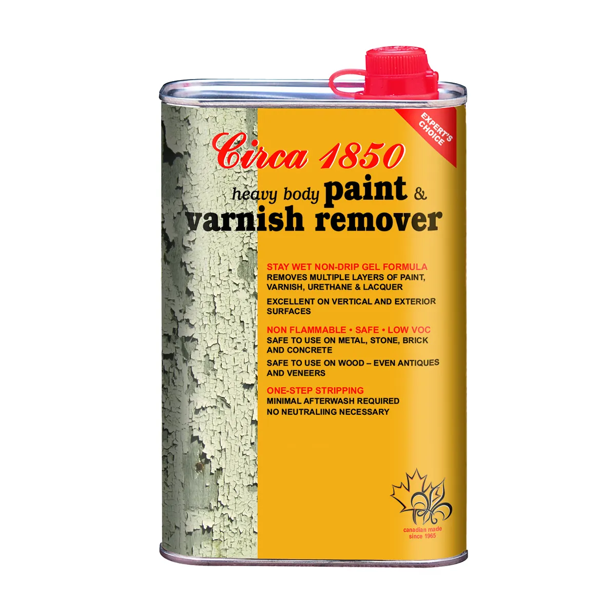 • Circa 1850 Heavy Body Paint & Varnish Remover quickly and easily strips off multiple layers of oil; latex and epoxy paint; oil and latex varnish; polyurethane; moisture cure; lacquer and shellac.