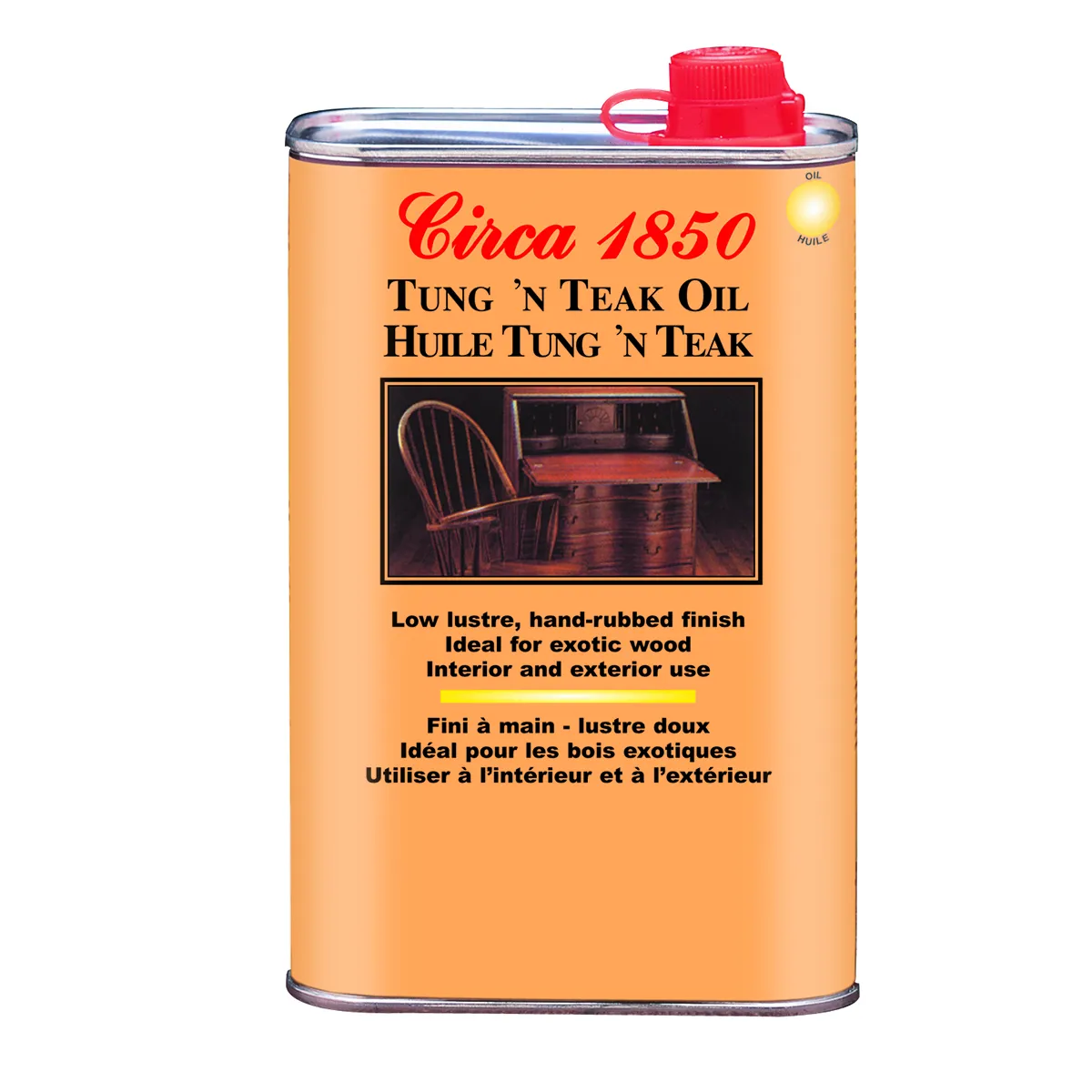 Circa 1850 Tung'n Teak oil is a unique blend of tung oil and teak oil. Tung oil; a natural oil extracted from the nut of an oriental tree; has been used for centuries to protect and beautify wood. Teak oil is commonly used on teak furniture and boats. Circa 1850 Tung'n Teak oil combines the penetration of teak with the durability of tung oil. It penetrates deep into the pores of wood to strengthen the fibres of the wood while providing a low lustre; hand-rubbed finish. Circa 1850 Tung'n Teak oil is ideal for interior and exterior wood.