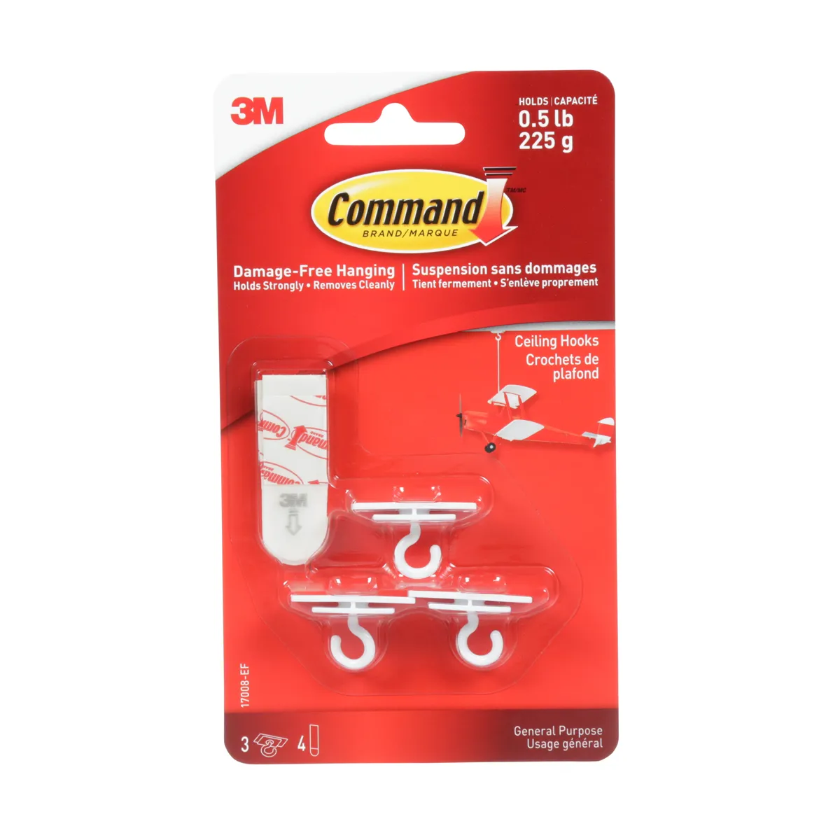 Decorate your spaces damage-free with Command™ ceiling hooks. A proprietary Command™ adhesive helps these hooks hold strongly on a variety of smooth; finished surfaces; when it comes time for removal; they come off cleanly with no sticky residue or marks left behind. Reusing these hooks is as easy as applying a Command® refill strip; allowing you to take down; move; and re-hang again and again.