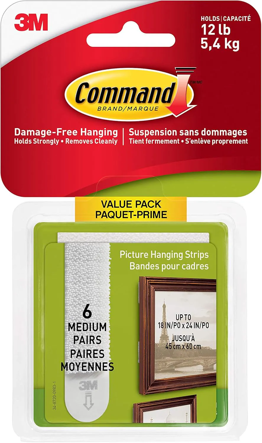 One click tells you that the Command™ picture hanging strips are locked in and holding tight; and when you are ready to take down or move your pictures; they come off without damaging your walls with nail holes; cracked plaster or sticky residue. Command™ picture hanging strips are also great for creating a gallery wall; hanging posters; hanging college dorm or baby room decor; and more!.