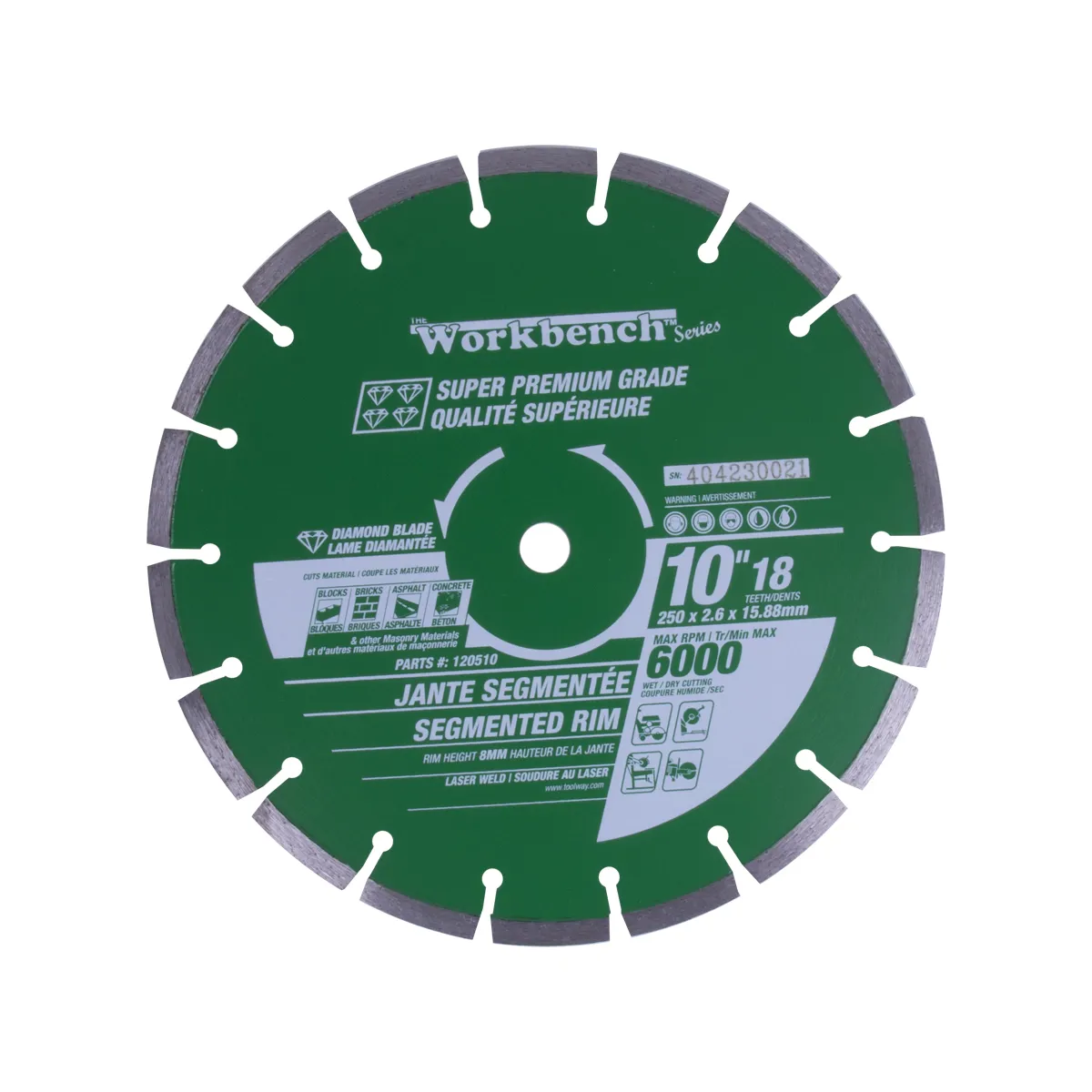 Diamond Saw Blade 10in 18T Laser Weld Segmented