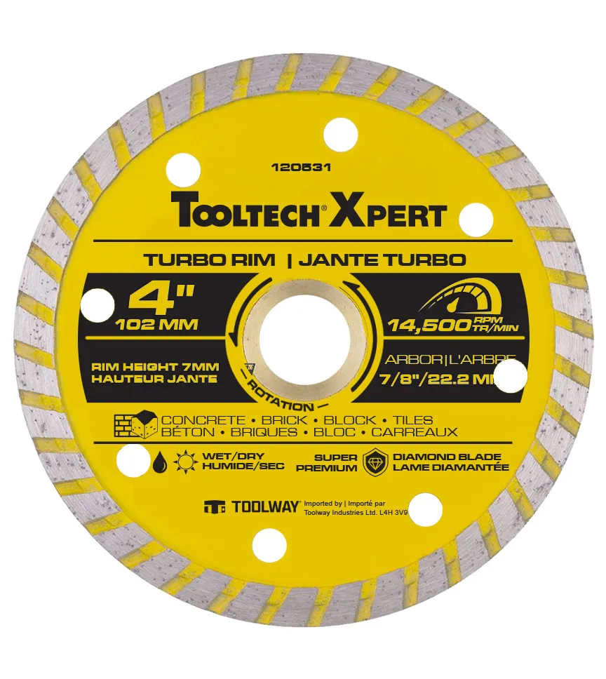 Continuous Rim diamond saw blades and are perfect for fast cuts in Brick; Block; Granite; Porcelain; Concrete.For Wet Cutting;Max RPM: 14500.