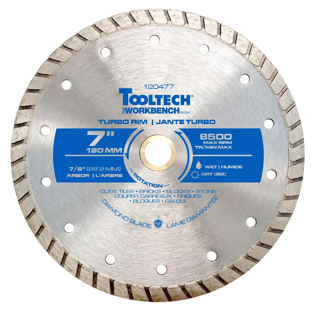• Turbo diamond saw blades are perfect for clean cuts in Brick, Block, Granite, Concrete.