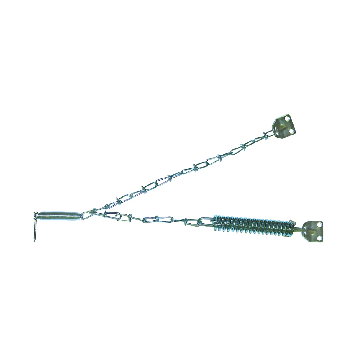 Door Chain Protects doors from wind damage. Hold up spring prevents chain from hitting door and scratching glass; Zinc plated storm door chain; Screen and storm door hardware.
