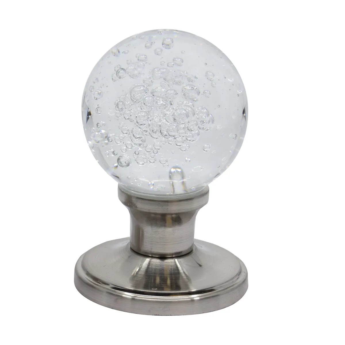 Door Knob Crystal Bubble Dummy Satin Nickel