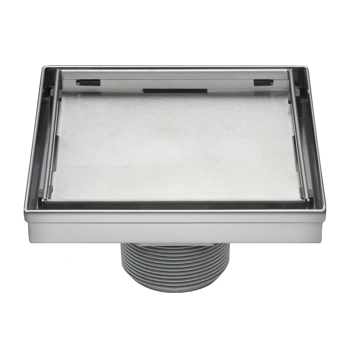 Eco Square Shower Drain Tile-in 5in x 5in x 3-1/8in Brushed SS