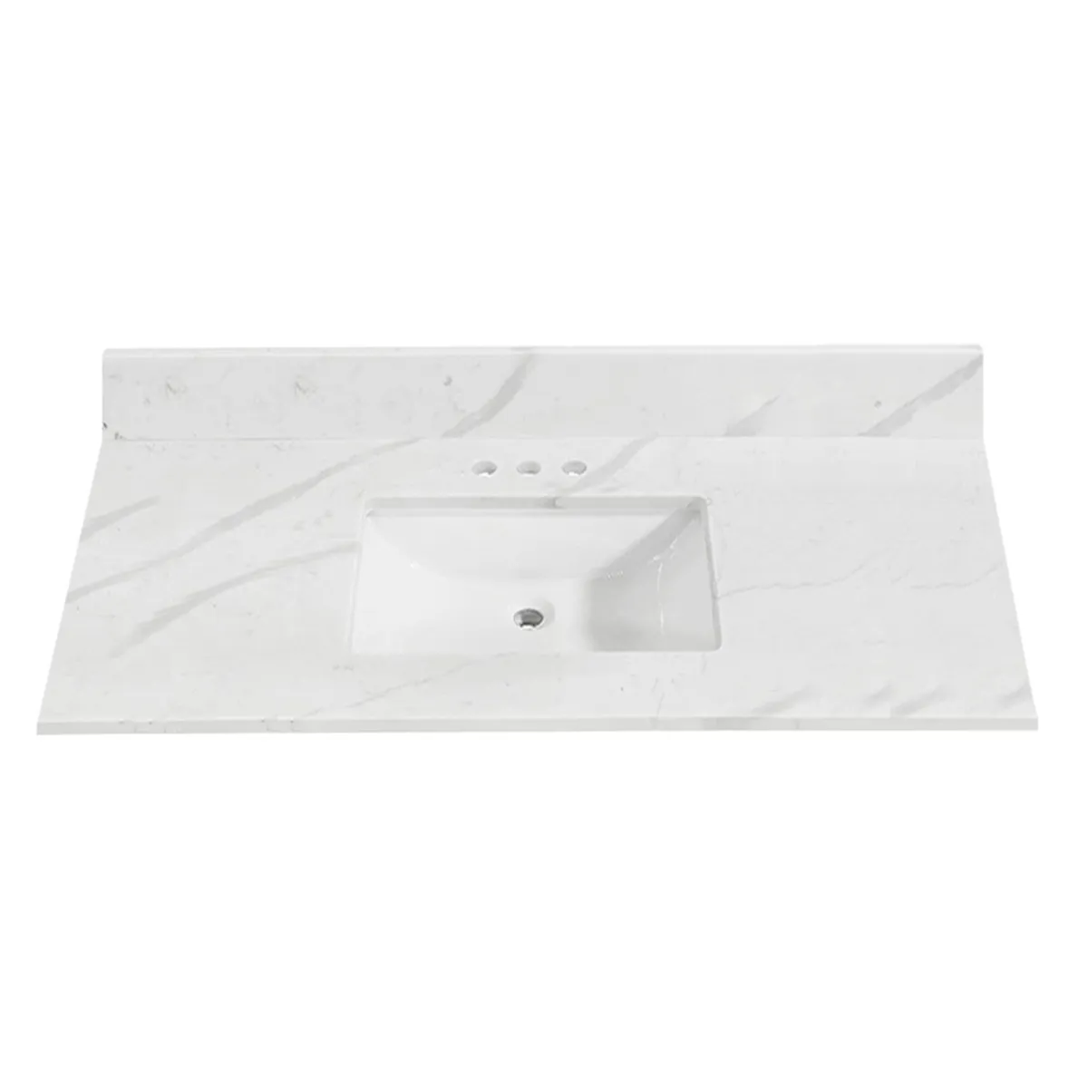 Eng. Marble Top Rectangle Undermount Sink 37in x 22in Wht/Gry