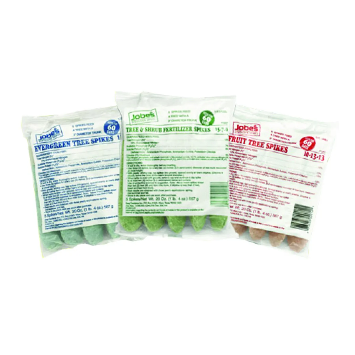 Evergreen 11-3-4 Jobe's evergreen fertilizer spikes ensure a continuous supply of nutrients below the surface; where the tree's active roots are growing. The Spikes are easy just insert around the tree's drip line; and the slow-release formula lasts all season. Spikes are specially formulated for acid-loving Evergreen trees and shrubs. Each package contains 5 spikes.