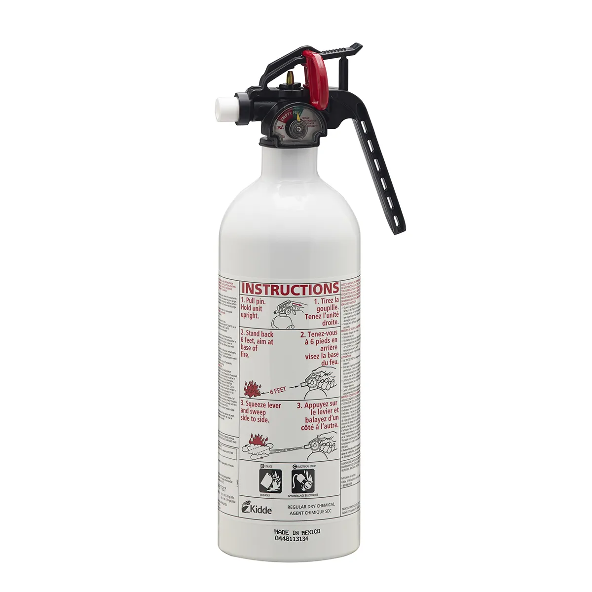 Suitable for use on class B (liquids & gases) and class C fires (energized electrical equipment). The 468031MTL home series white fire extinguisher comes equipped with a tough metal handle and is fitted with a pressure gauge that provides at-a-glance status. 'BC' rated fire extinguishers won't fuse with and damage metal surfaces; making clean-up easier and less costly.