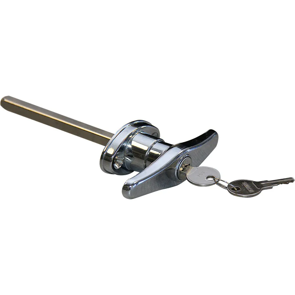 Standard T replacement garage door lock handle. Shaft measures 5/16 inches diameter with a 1-1/2 inch hole spacing center to center. Shaft is four inches long. When used with SK7115;the SK278 locking cylinder is required to unlock door from the outside.