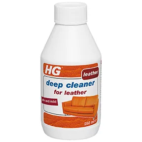 Hg deep cleaner for leather is a mild water based cleaner for cleaning deep in the pores of full aniline and scumbled types of leather; such as leather furniture; car leather; luggage and bags.