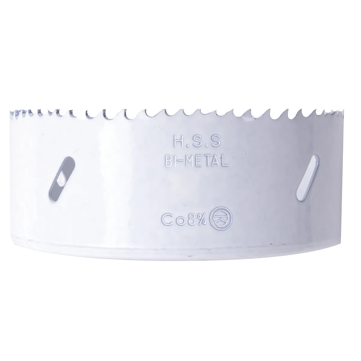 Can be used to cut holes in Wood, Plastic, or any machinable Metal including: nail-embedded wood, plywood, pipe, stainless steel, etc.