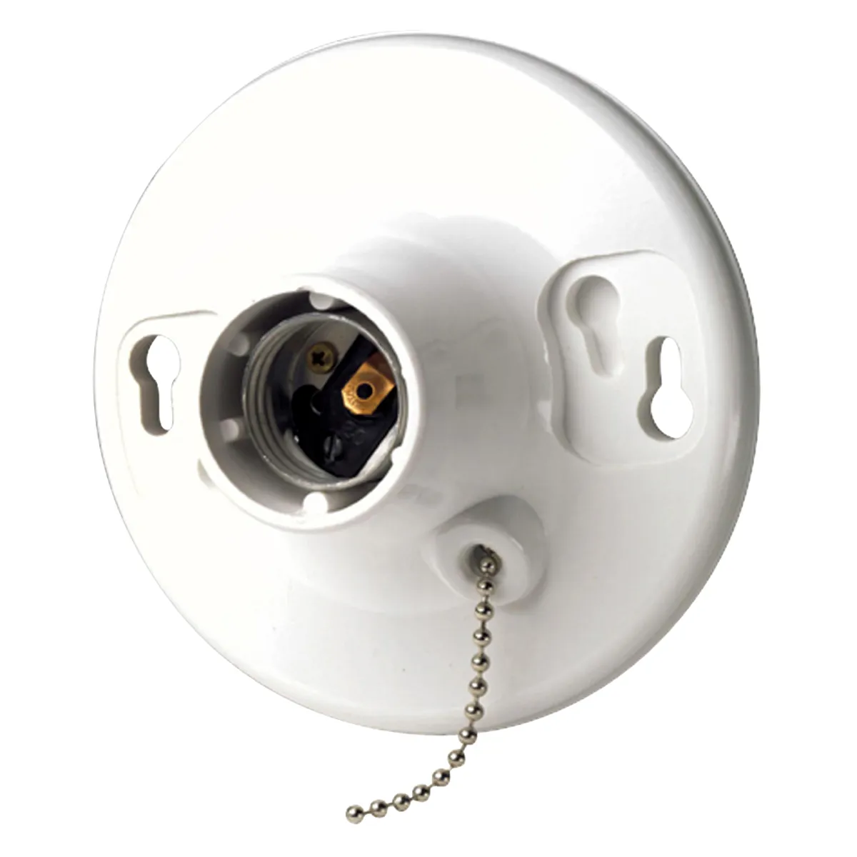 Lamp Socket Pull Chain Outlet Box Mount 1 Circuit Plastic White
