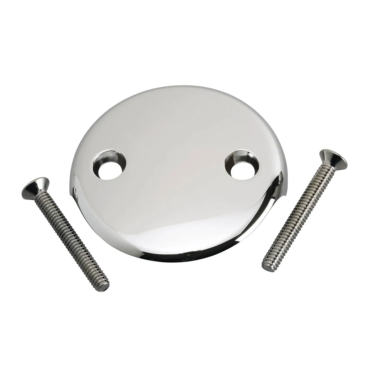 Replacement of waste and overflow face plate (two hole mount) is Chrome plated finish. Die cast zinc resists corrosion and rust. Includes two (2) chrome plated brass screws (1/4 inch x 2 inch).