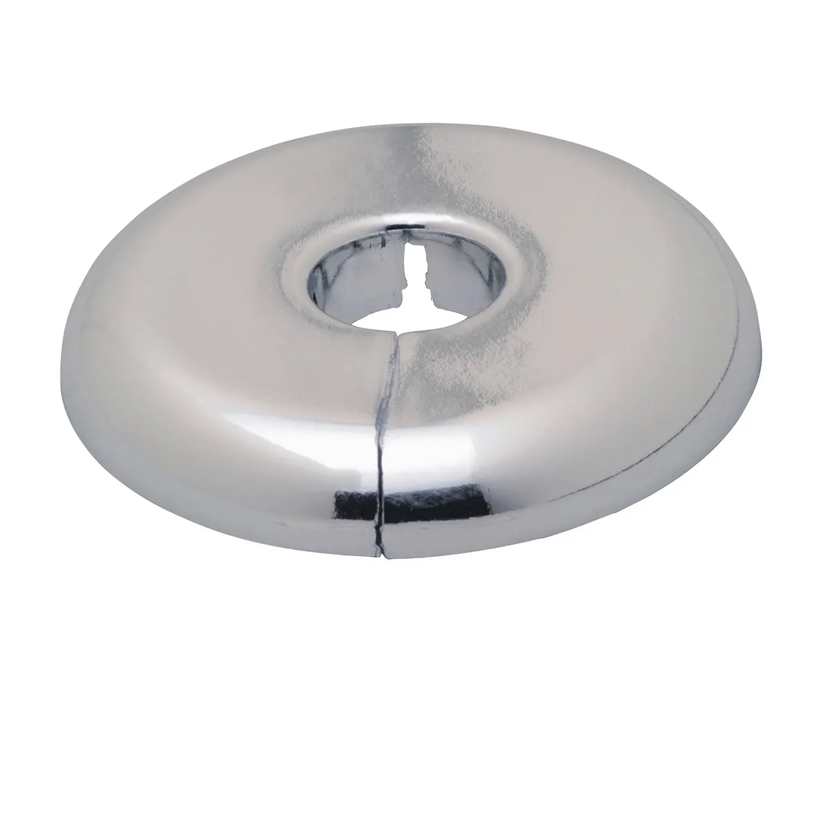 Chrome plated plastic for flexibility. Fits 1/2 inch Copper pipe or 3/8 inch iron pipe. Will not rust or corrode. Split mechanism snaps over existing pipes for easy installation on walls. 1/2 inch C or 3/8 inch I.P.