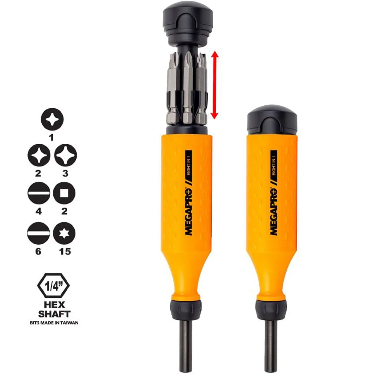 The Original 8-in-1 is a handy household multi-bit screwdriver option. Featuring 7 commonly needed bits; you’ll be equipped to take on tasks around the home; be it dishwasher maintenance or changing out a toy battery. This driver includes all the patented technology that makes Megapro a must-have; with a more compact shape to fit nicely in your 'everything drawer' storage. Available in Black; Orange; and Green.