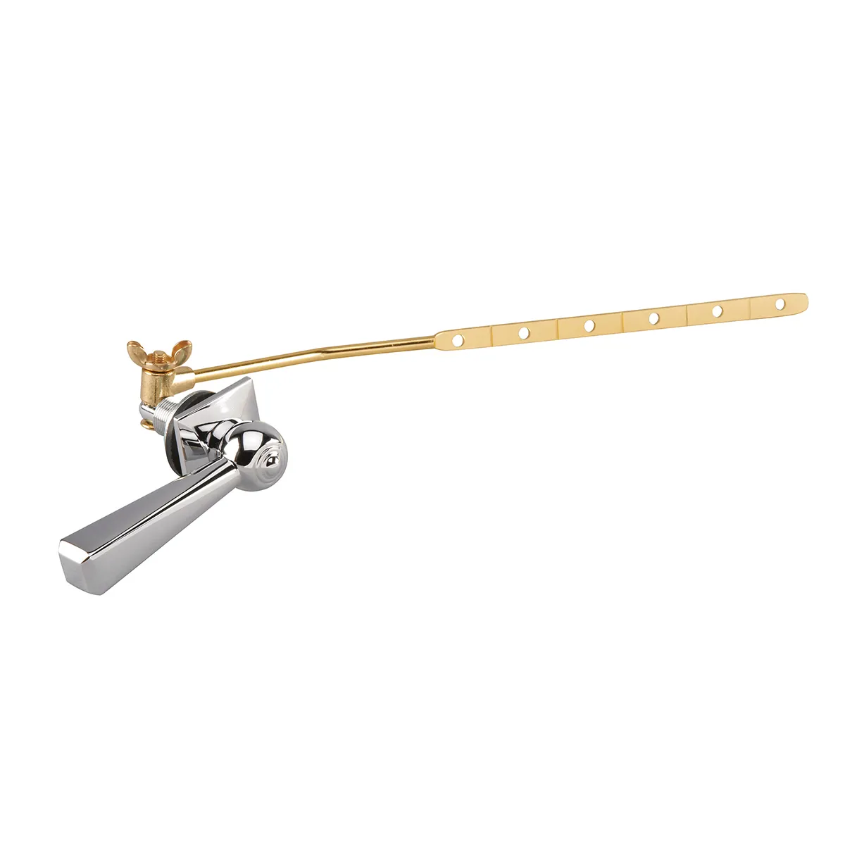 Universal Fit-All™ Chrome plated zinc handle. Zinc metal spud and nut. 9-1/2 inch long aluminum arm. Adjustable arm fits most front and angle mount toilets. Arm can be cut in length if necessary (5 inch or 7 inch length).
