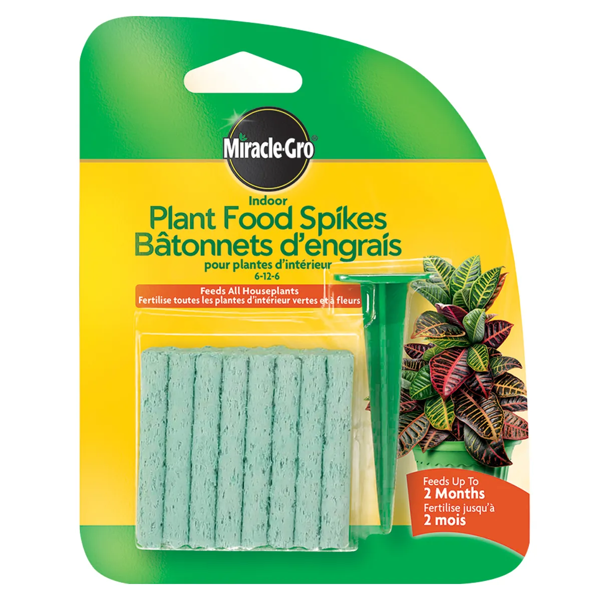 Miracle-gro indoor plant food spikes 6-12-6 31 g pack; 24 spikes.