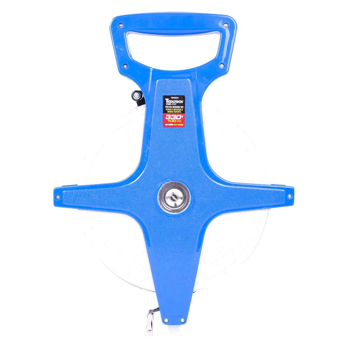 The Fat-Pat open reel surveyor's tape measure from Toolway is the perfect tool for measuring long distances quickly and efficiently. The PVC coated fiberglass tape is water and crease resistant and the efficient rewind handle makes reeling in the tape a breeze.