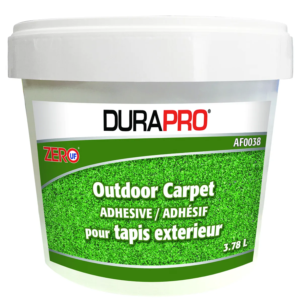 Durapro af0038 is a rubber based; solvent-free; low voc adhesive for permanent installation of exterior carpet and artificial grass over exterior grade plywood; pressure treated wood; hardened concrete.