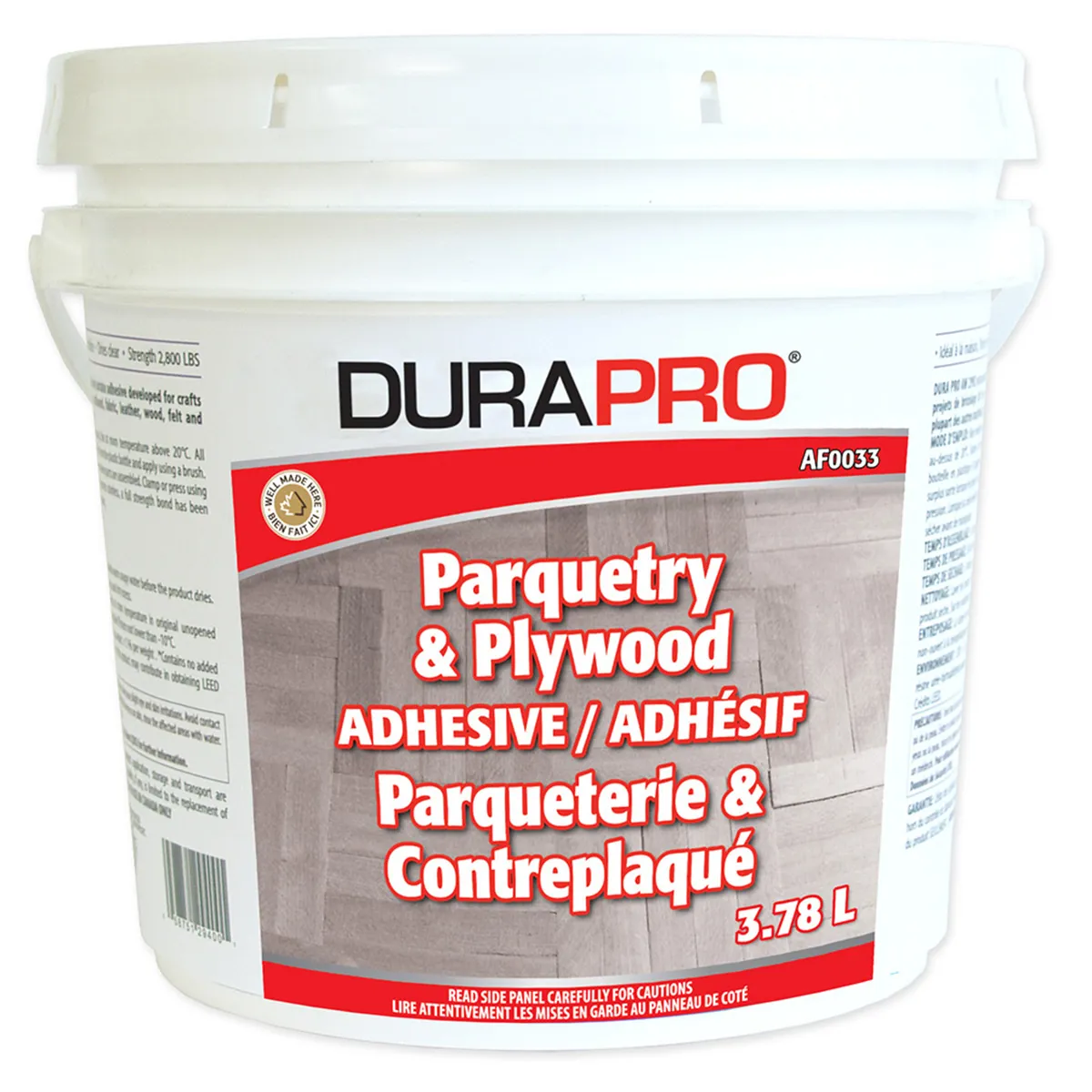 • Durapro af0033 is a high-solids latex based adhesive used for direct glue-down of 12in x 12in finger strips parquet made of maple; oak or birch; on t&g floor grade plywood or cured concrete slab.