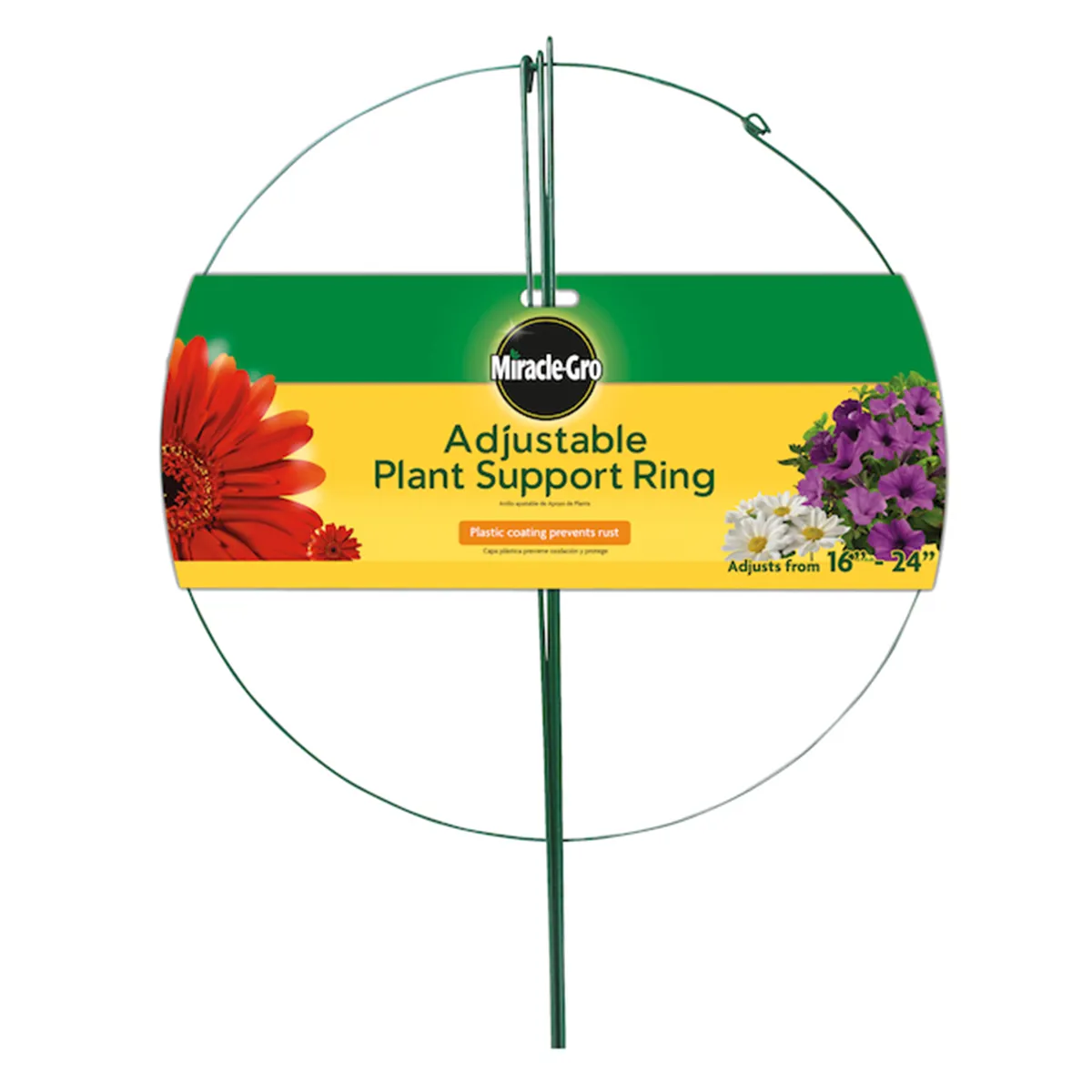 A perfect growth for your peony requires the right prop. Miracle-Gro adjustable peony ring extends from 16 to 24 inches as the plant grows; and keeps the plant protected; within bounds. Its powder coating resists corrosion; for a plant prop that can withstand outdoor conditions.