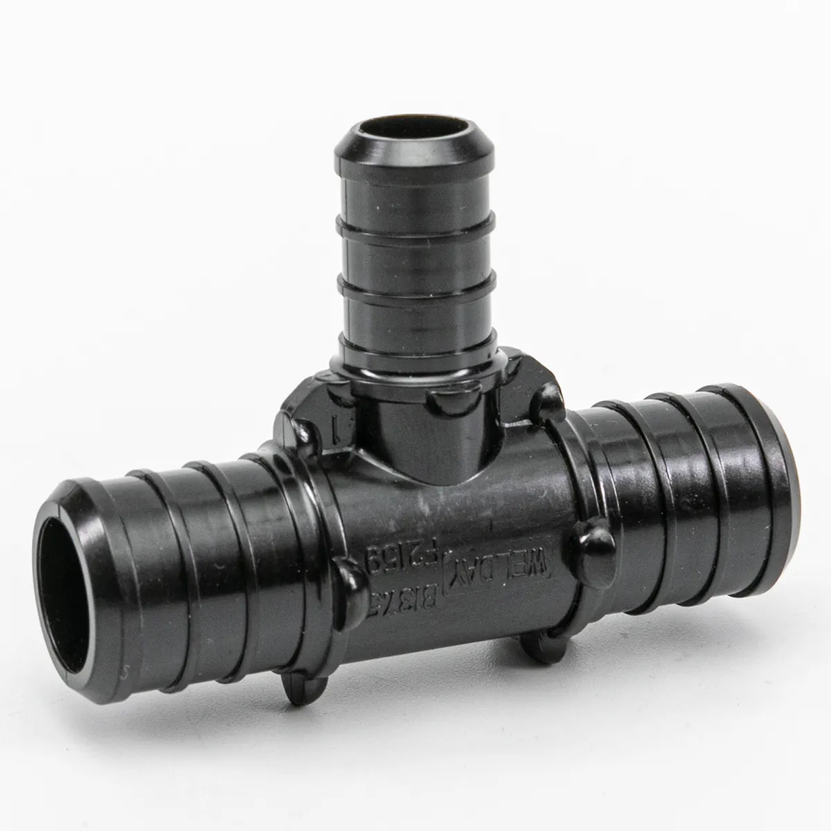 Pex Poly Tee Barb To Barb 1 x 1 x 1/2in Black