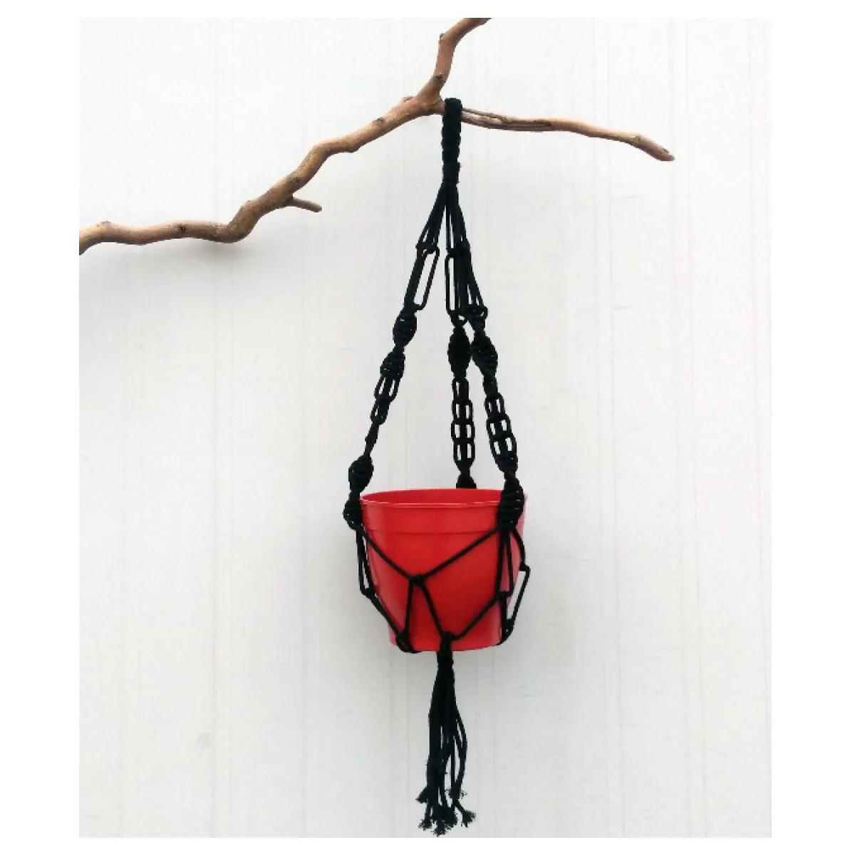 • Planter Hanger Macrame Cotton Rope Style C 33in Black