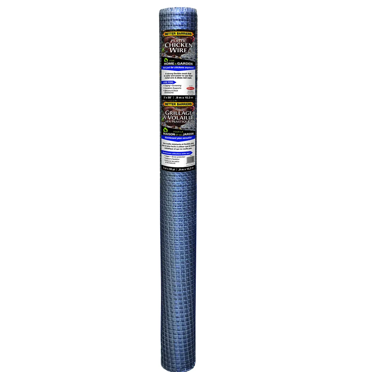 1/2 in x 1/2 in mesh size Quest plastic poultry netting; non-corrosive; 50 ft length; 36 in height; 1/2 in mesh; plastic; For caging; screening; insulation supports; balcony and deck enclosures and for home and garden.