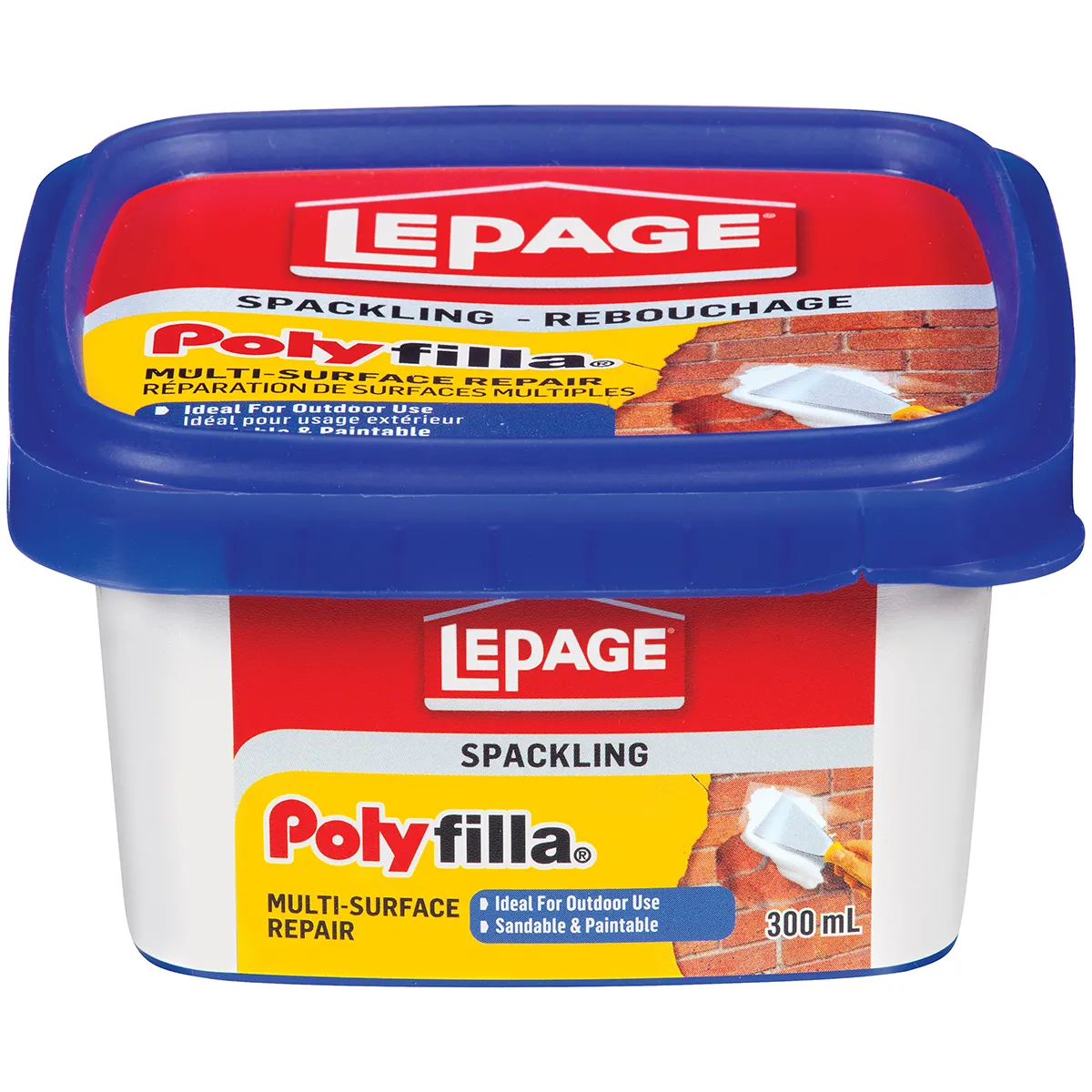 Lepage poly filla spackling compound; multi-surface; 300 ml; plastic tube packing; 750 mcp viscosity; 8. 7 ph; paste; tan; 1 - 5 hr drying time; 1 - 5 hr application; characteristic odor/scent; 95 deg c flash point; media: carbon dioxide; foam; powder; composition: quartz (sio2); limestone; 1. 79 specific gravity; 10 deg c application; resists: water.