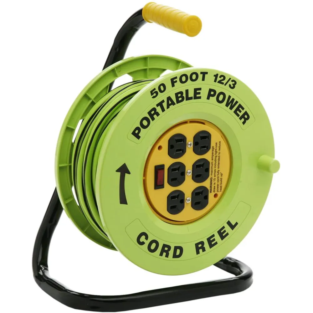 Portable Power Extension Cord Reel 6-Outlet 50ft 12/3 Cord
