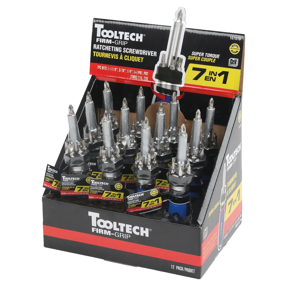 Ratcheting Screwdriver 7-in-1 Multi-Bit Cr-V