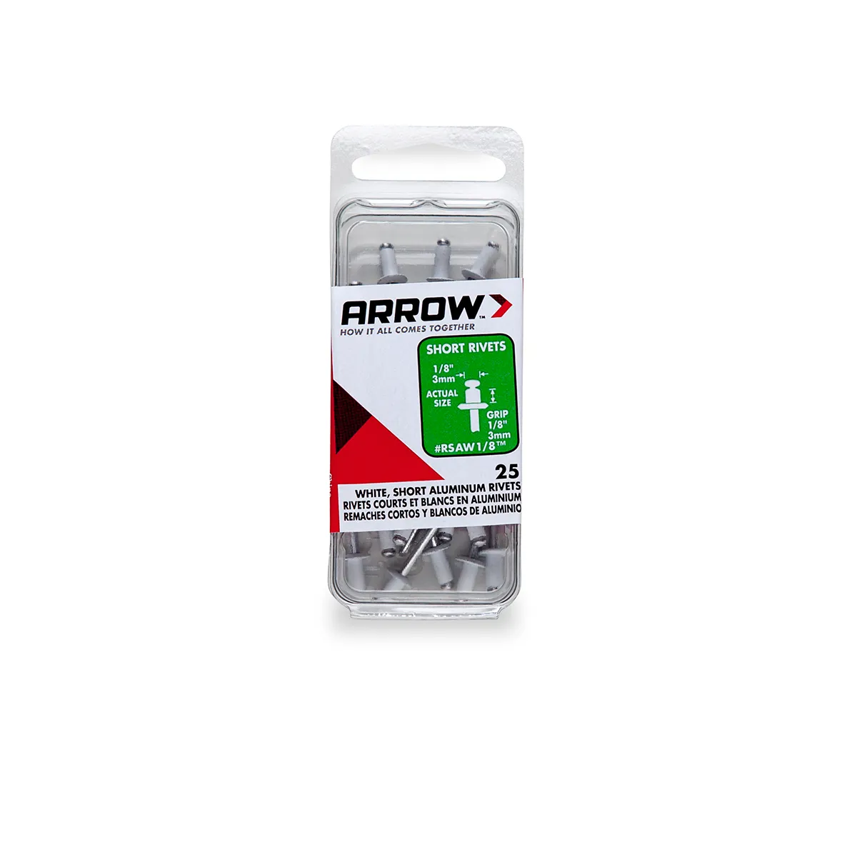 Rivets aluminum package; 1/8 inch grip range; pack of 25 use steel rivets for very heavy duty jobs and when riveting steel to steel. Use aluminum rivets for lighter weight jobs and materials such as aluminum; fabrics; plastics; leather; etc. Use washers when joining soft materials or when existing hole is oversize.
